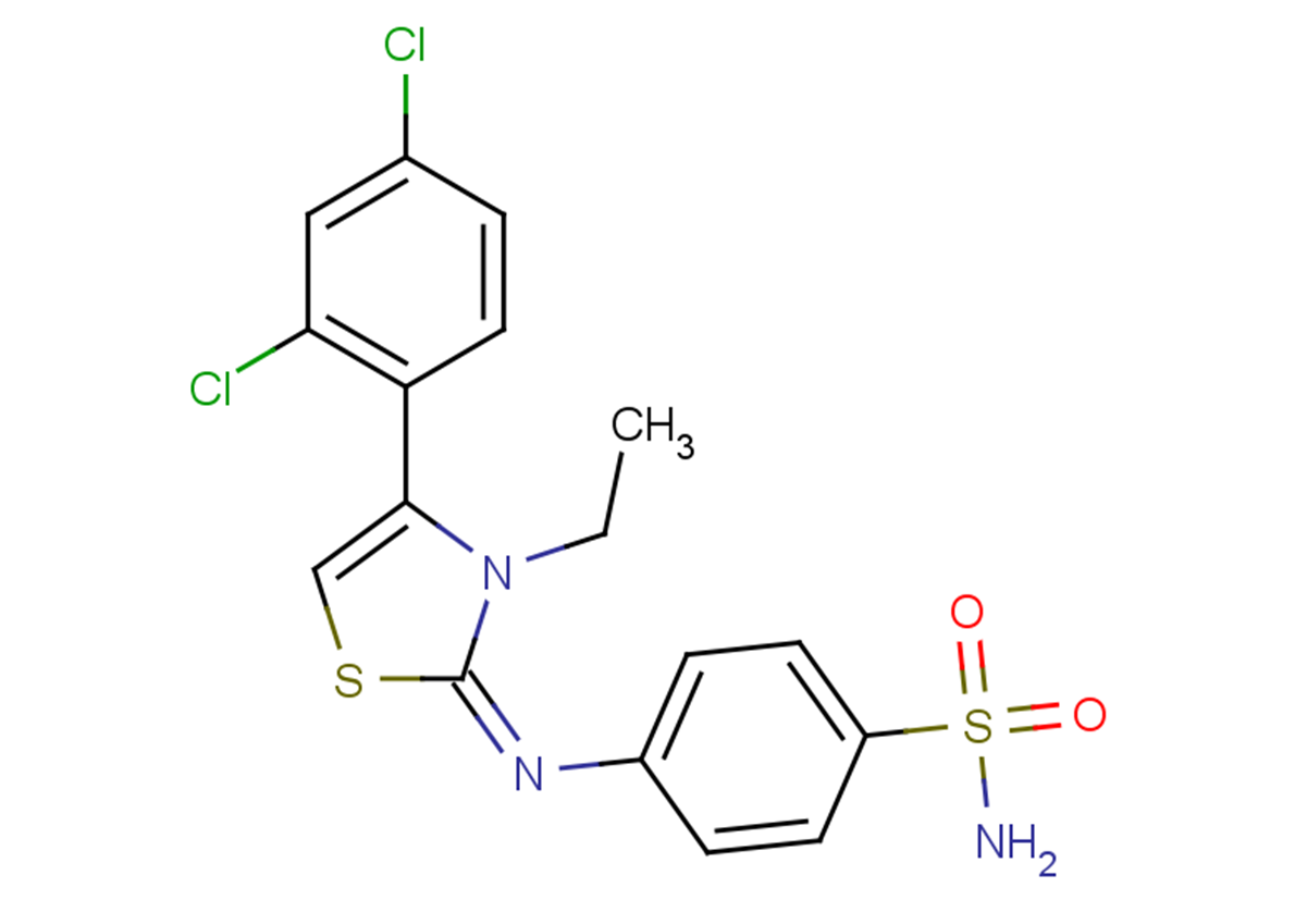 SMILESClC1=CC(Cl)=C(C(N/2CC)=CSC2=N\C3=CC=C(S(=O)(N)=O)C=C3)C=C1