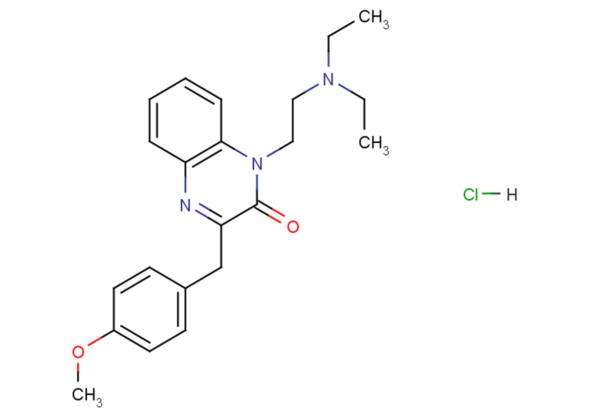 SMILESO=C1N(CCN(CC)CC)C2=C(C=CC=C2)N=C1CC3=CC=C(OC)C=C3.[H]Cl