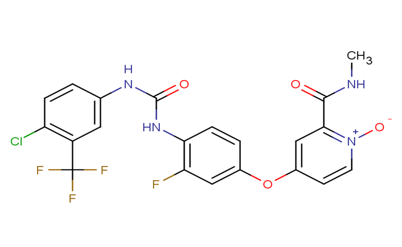 SMILESCNC(=O)C1=[N+](C=CC(=C1)OC2=CC(=C(C=C2)NC(=O)NC3=CC(=C(C=C3)Cl)C(F)(F)F)F)[O-]