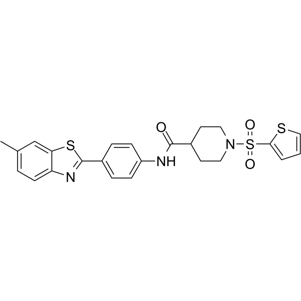 SMILESCc1ccc2nc(sc2c1)-c1ccc(NC(=O)C2CCN(CC2)S(=O)(=O)c2cccs2)cc1
