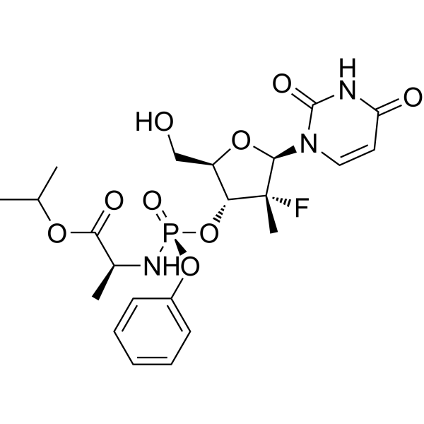 SMILESCC(C)OC(=O)[C@H](C)N[P@](=O)(O[C@@H]1[C@@H](CO)O[C@@H](n2ccc(=O)[nH]c2=O)[C@]1(C)F)Oc1ccccc1