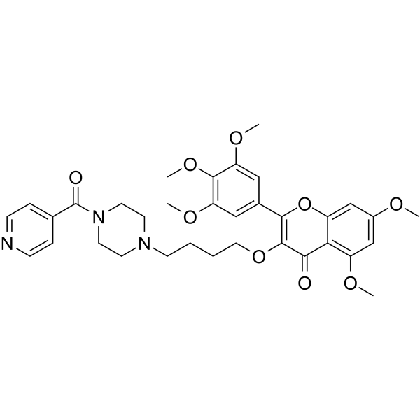 SMILESCOc1cc(OC)c2c(c1)oc(-c1cc(OC)c(OC)c(OC)c1)c(OCCCCN1CCN(CC1)C(=O)c1ccncc1)c2=O