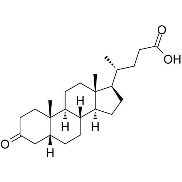 Brief Description3-Oxo-5β-cholanoic acid (Dehydrolithocholic acid) is a bile acid metabolite and inhibits the differentiation of TH17 cells by directly binding to the key transcription factor RORγt (Kd: 1.13 μM).