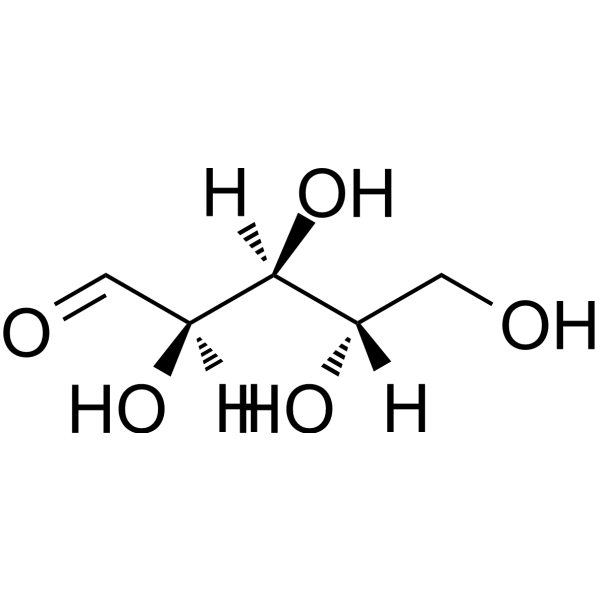 DescriptionL-(+)-Arabinose inhibits intestinal sucrase activity, thereby reducing sucrose utilization, and consequently decreasing lipogenesis.(In Vitro):L-(+)-Arabinose is found to be associated with ribose-5-phosphate isomerase deficiency, which is an inborn error of metabolism.L-(+)-Arabinose selectively inhibits intestinal sucrase activity in a noncompetitive manner and suppresses the plasma glucose increase due to sucrose ingestion. (In Vivo):L-(+)-Arabinose feeding reduced the weights of epididymal adipose tissue in rats. Moreover, plasma insulin and triacylglycerol concentrations were significantly reduced by dietary L-(+)-Arabinose. L-(+)-Arabinose suppresses gluconeogenesis through modulating AMP-activated protein kinase in metabolic disorder mice.