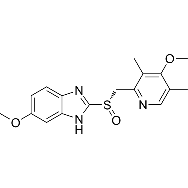 DescriptionEsomeprazole is the S-isomer of omeprazole, inhibits the lysosomal cysteine protease legumain to prevent cancer metastasis. Esomeprazole is a proton pump inhibitors (PPI).(In Vivo):In an orthotopic transplantation nude mouse model, Esomeprazole reduced lung metastasis of MDA-MB-231 breast cancer cells.