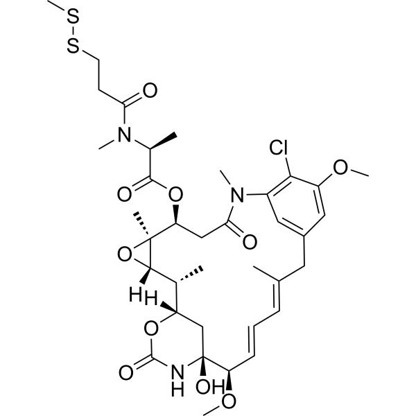Brief DescriptionDM1-SMe is a potent inhibitor of maytansinoid microtubular. DM1-SMe is about 3 to 10-fold more potent than the parent drug Maytansine, with IC50s of 0.003 to 0.01 nM for DM1-SMe in a panel of human tumor cell lines.