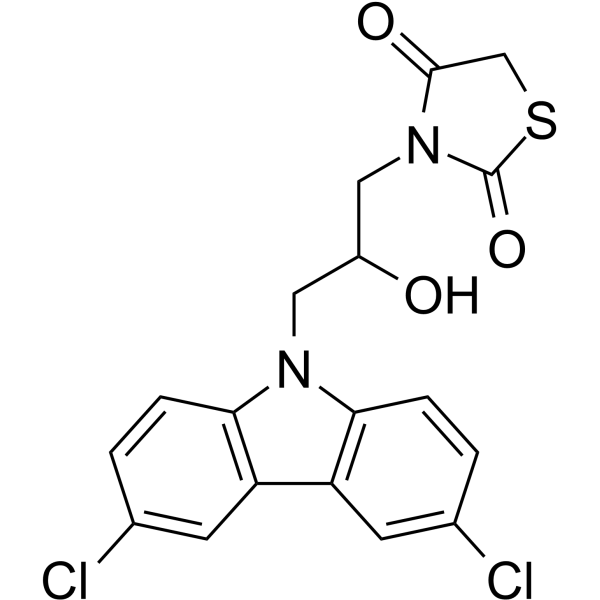 Description10074-A4 is a c-Myc binding compound that associates with c-Myc370–409 and behaves like a “ligand cloud” around a “protein cloud”, with distinct features from that of a non-binding ligand.(In Vitro):10074-A4 showed binding affinity with c-Myc370–409 with Kd of 36.3 ± 9.0 μM and EC50 of 15.1 ± 2.3 μM.10074-A4 arrests the cell cycle at the S-phase in a dose-dependent manner in HL-60 cells.