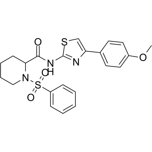 Brief Description2-Piperidinecarboxamide, N-[4-(4-methoxyphenyl)-2-thiazolyl]-1-(phenylsulfonyl)- is a potent KCNQ1 channel activator that can be used in long QT syndrome (LQTS) studies.