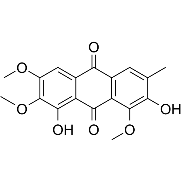 DescriptionObtusin is a natural product.(In Vitro):Nine anthraquinones, aurantio-Obtusin (1), chryso-Obtusin (2), Obtusin (3), chryso-Obtusin-2-O-beta-D-glucoside (4), physcion (5), emodin (6), chrysophanol (7), obtusifolin (8), and obtusifolin-2-O-beta-D-glucoside (9), isolated from an EtOAc-soluble extract of the seeds of Cassia tora, were subjected to in vitro bioassays to evaluate their inhibitory activity against advanced glycation end products (AGEs) formation and rat lens aldose reductase (RLAR).