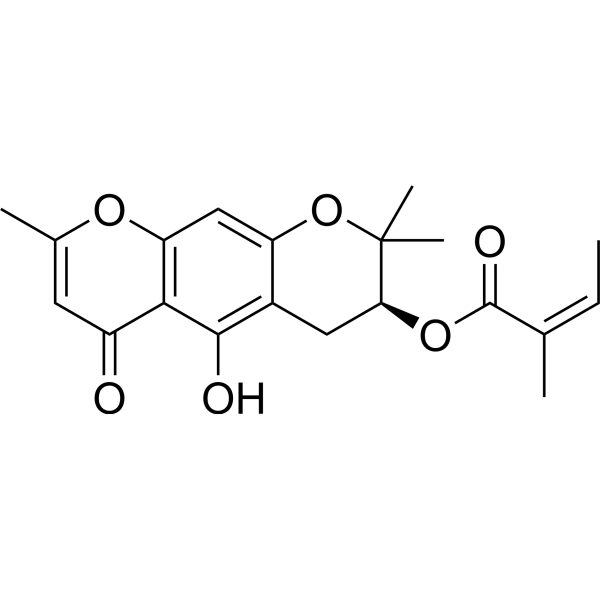 3'-O-Angeloylhamaudol has anti-inflammatory activity. 3'-O-Angeloylhamaudol induces apoptosis through the mitochondial-dependent apoptotic pathway.