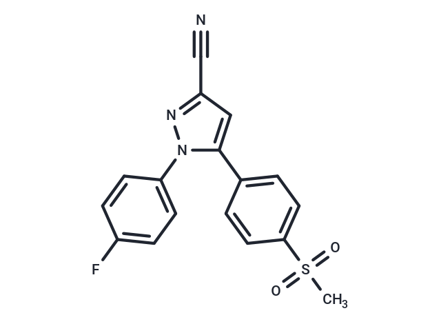 SMILESC(#N)C=1C=C(N(N1)C2=CC=C(F)C=C2)C3=CC=C(S(C)(=O)=O)C=C3