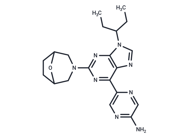 SMILESN=1C=C(N=CC1N)C2=NC(=NC3=C2N=CN3C(CC)CC)N4CC5OC(C4)CC5