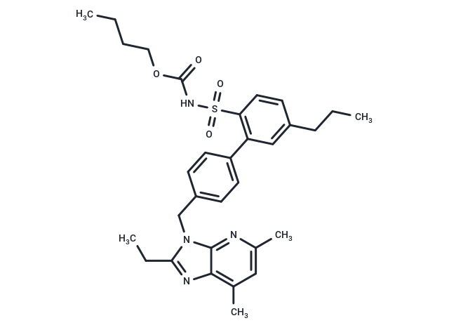 SMILESO=C(OCCCC)NS(=O)(=O)C=1C=CC(=CC1C2=CC=C(C=C2)CN3C4=NC(=CC(=C4N=C3CC)C)C)CCC