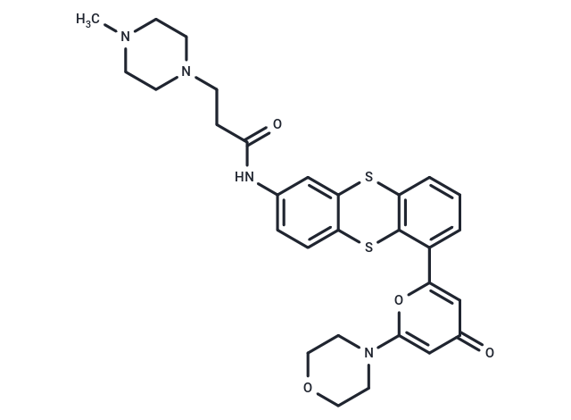 SMILESCN1CCN(CCC(=O)Nc2ccc3Sc4c(Sc3c2)cccc4-c2cc(=O)cc(o2)N2CCOCC2)CC1