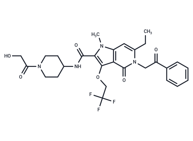SMILESO(CC(F)(F)F)C=1C2=C(N(C)C1C(NC3CCN(C(CO)=O)CC3)=O)C=C(CC)N(CC(=O)C4=CC=CC=C4)C2=O