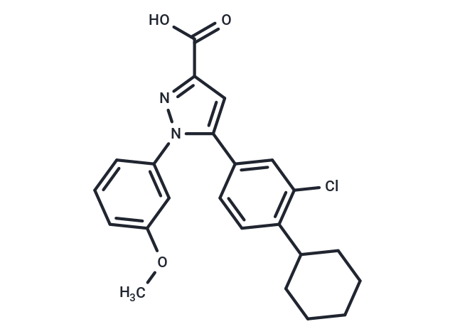 SMILESC(O)(=O)C=1C=C(N(N1)C2=CC(OC)=CC=C2)C3=CC(Cl)=C(C=C3)C4CCCCC4