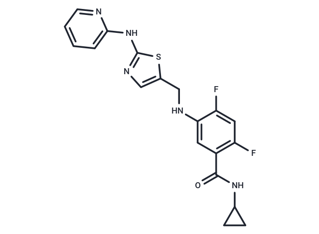 SMILESFc1cc(F)c(cc1NCc1cnc(Nc2ccccn2)s1)C(=O)NC1CC1