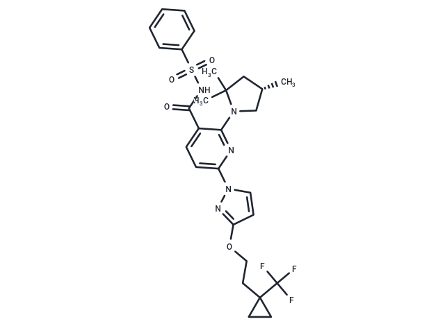 SMILESC[C@@H]1CN(c2nc(ccc2C(=O)NS(=O)(=O)c2ccccc2)-n2ccc(OCCC3(CC3)C(F)(F)F)n2)C(C)(C)C1