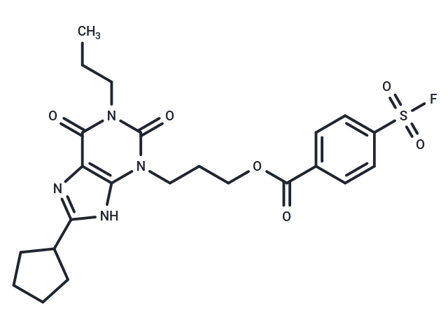 In VitroFSCPX irreversibly blocks the binding of [3H]-8-cyclopentyl-1,3dipropylxanthine ([3H]DPCPX), with an IC50 of 11.8±3.2 nM in DDT1 MF2 cells.FSCPX (20 μM; 48 h) attenuates protection from necrosis and apoptosis in A1AR-overexpressing LLC-PK1 cells.FSCPX (2-20 μM; 48 h) reverses the upregulation of HSP27 mRNA and protein in A1AR-overexpressing LLC-PK1 cells without an effect on the mRNA or protein for HSP70.