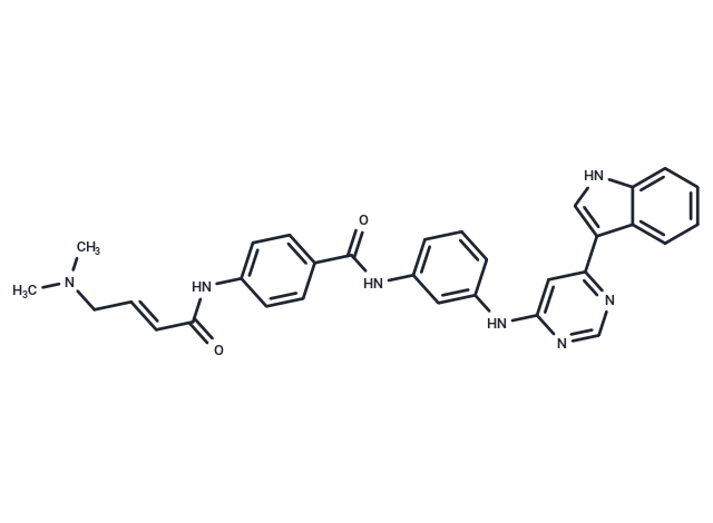 SMILESCN(C)C\C=C\C(=O)Nc1ccc(cc1)C(=O)Nc1cccc(Nc2cc(ncn2)-c2c[nH]c3ccccc23)c1