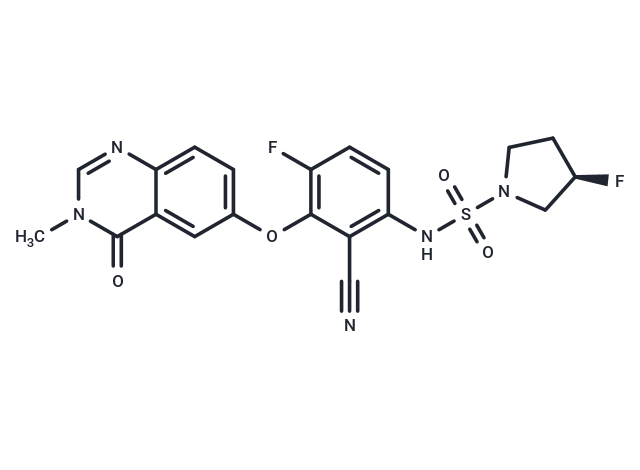 SMILESCn1cnc2ccc(Oc3c(F)ccc(NS(=O)(=O)N4CC[C@@H](F)C4)c3C#N)cc2c1=O