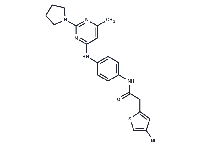 SMILESCc1cc(Nc2ccc(NC(=O)Cc3cc(Br)cs3)cc2)nc(n1)N1CCCC1