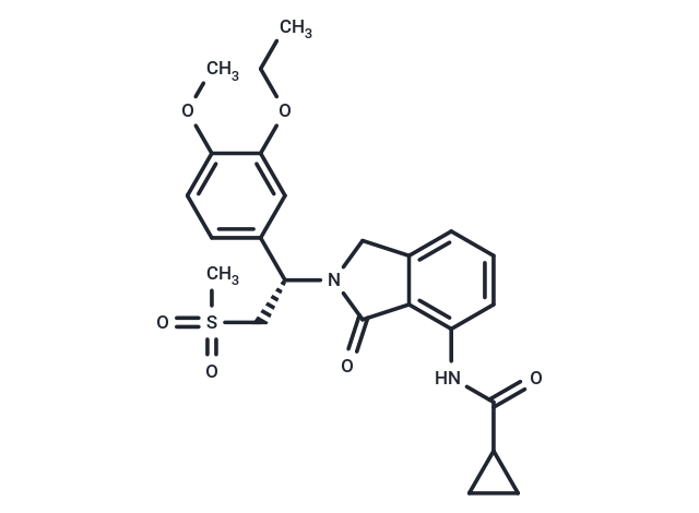DescriptionDovramilast (CC-11050) is an orally active phosphodiesterase 4 (PDE4) inhibitor and can reduce the inflammatory response and improves Isoniazid (INH)-mediated bacillary clearance from the lungs. Dovramilast, as an adjunct, is used for the research of tuberculosis (TB).