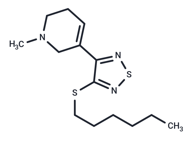 1. Sauerberg P, et al. Novel functional M1 selective muscarinic agonists. Synthesis and structure-activity relationships of 3-(1,2,5-thiadiazolyl)-1,2,5,6-tetrahydro-1-methylpyridines . J Med Chem. 1992 Jun 12;35(12):2274-83.?