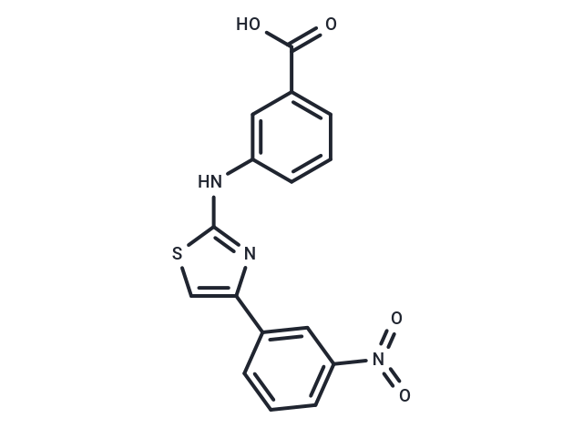 SMILESN(C1=NC(=CS1)C2=CC(N(=O)=O)=CC=C2)C3=CC(C(O)=O)=CC=C3