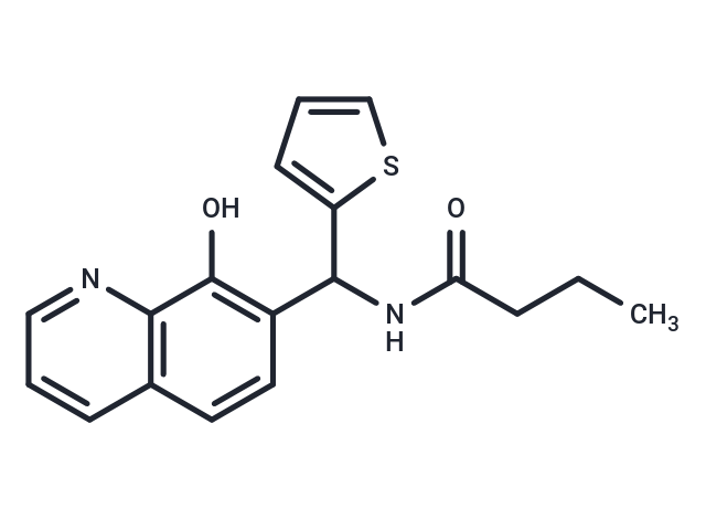 SMILESC(NC(CCC)=O)(C1=C(O)C2=C(C=C1)C=CC=N2)C3=CC=CS3