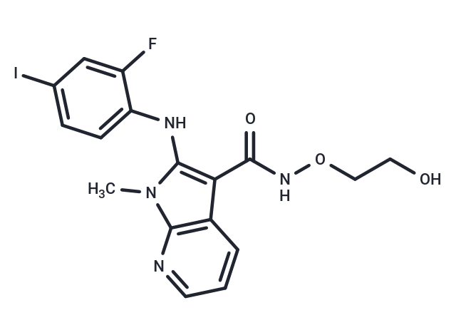 SMILESO=C(NOCCO)C=1C=2C=CC=NC2N(C1NC3=CC=C(I)C=C3F)C