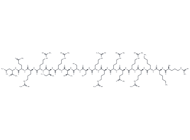 SMILES[C@H](C(N[C@H](C(N[C@H](C(N[C@@H](CC(C)C)C(N)=O)=O)CCC(N)=O)=O)CCCNC(=N)N)=O)(NC([C@@H](NC([C@@H](NC([C@@H](NC([C@@H](NC([C@@H](NC([C@@H](NC([C@@H](NC([C@@H](NC([C@@H](NC([C@@H](NC([C@@H](NC([C@@H](NC([C@@H](NC([C@H](CCCNC(=N)N)N)=O)CCCCN)=O)CCCCN)=O)CCCNC(=N)N)=O)CCCNC(=N)N)=O)CCC(N)=O)=O)CCCNC(=N)N)=O)CCCNC(=N)N)=O)CCCNC(=N)N)=O)CS)=O)CO)=O)[C@@H](C)O)=O)CCCNC(=N)N)=O)[C@H](CC)C)=O)CCCNC(=N)N