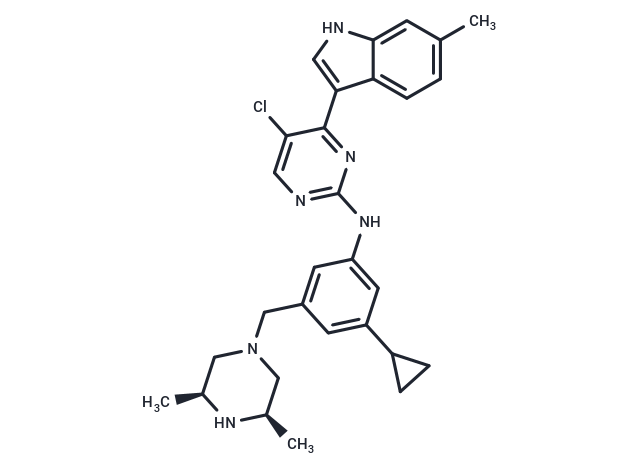 SMILESC[C@H]1CN(Cc2cc(Nc3ncc(Cl)c(n3)-c3c[nH]c4cc(C)ccc34)cc(c2)C2CC2)C[C@@H](C)N1