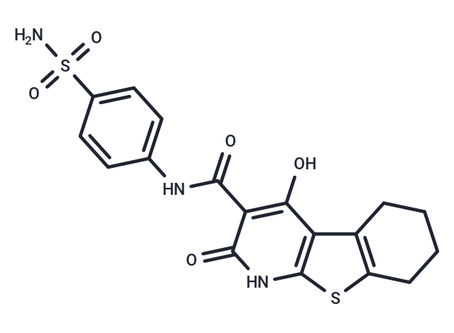 SMILESNS(=O)(=O)c1ccc(NC(=O)c2c(O)c3c4CCCCc4sc3[nH]c2=O)cc1