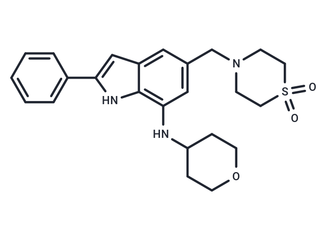 SMILESN(C1=C2C(C=C(N2)C3=CC=CC=C3)=CC(CN4CCS(=O)(=O)CC4)=C1)C5CCOCC5