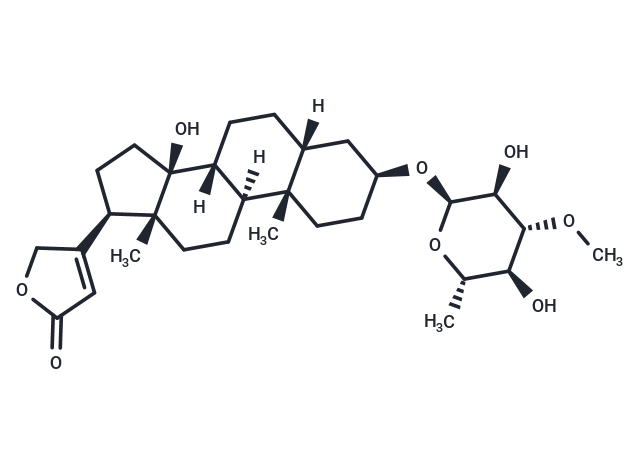 Brief DescriptionNeriifolin (17β-Neriifolin), a cardiac glycoside extracted from the unripe fruit of Cerbera manghas, is a Na+K+-ATPase inhibitor with anticancer activity that inhibits cell proliferation by suppressing HOXA9-dependent gene expression and inducing apoptosis in the human acute myeloid cell line, THP-1.