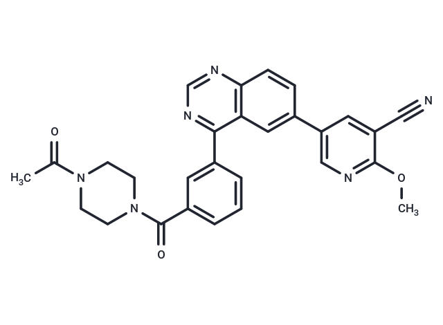 SMILESC(=O)(C=1C=C(C=2C3=C(C=CC(=C3)C=4C=C(C#N)C(OC)=NC4)N=CN2)C=CC1)N5CCN(C(C)=O)CC5