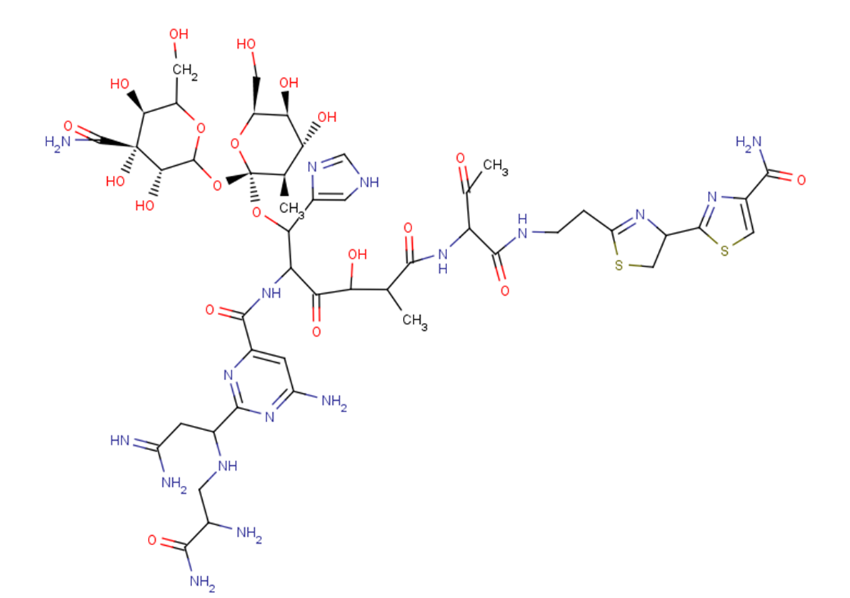 SMILESNC1=NC(C(NCC(N)C(N)=O)CC(N)=N)=NC(C(NC(C(O[C@@]2(OC3[C@H](O)[C@@](O)(C(N)=O)[C@@H](O)C(CO)O3)[C@H](C)[C@@H](O)[C@H](O)[C@H](CO)O2)C4=CNC=N4)C(C(O)C(C)C(NC(C(C)=O)C(NCCC5=NC(C6=NC(C(N)=O)=CS6)CS5)=O)=O)=O)=O)=C1