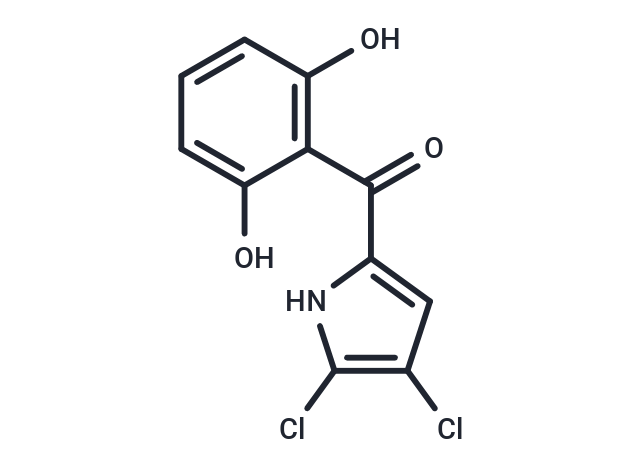 In VitroPyoluteorin is an antifungal compound composed of a bichlorinated pyrrole linked to a resorcinol moiety, were identified within a 24-kb genomic region of Pseudomonas fluorescens Pf-5.Pyoluteorin has significant cytotoxicity towards MCF-7 (IC50=1.84 μM). Pyoluteorin also displays significantly selective cytotoxicity against BT474, HCC1954, MAD-MB-468, MDA-MB-231, and MCF-10A cells with IC50s of 9.75±0.16, 0.94±0.01, 3.89±0.08, 0.97±0.01, and 57.01±0.76 μM, respectively.Pyoluteorin (0.1-10 μM; for 24 hours) induces change of apoptosis-related protein expressions. Pyoluteorin-induced cell apoptosis in MDA-MB-231 is related to Bcl-2 family proteins and caspase cascade.Pyoluteorin (0.1-10 μM; for 24 h) induces cell cycle arrest and apoptosis in human triple-negative breast cancer cells MDA-MB-231.Cell Proliferation Assay Cell Line:Human triple-negative breast cancer cell MDA-MB-231 Concentration:0, 0.032, 0.16, 0.8, 4, 20, 100 μM Incubation Time:24, 48, 72 hours Result:Inhibited cells proliferation in a dose- and time-dependent manner. Western Blot Analysis Cell Line:MDA-MB-231 cells Concentration:0.1, 0.3, 1, 3, 10 μM Incubation Time:24 hours Result:The levels of the anti-apoptotic proteins Bcl-2, Bcl-XL and PARP were obviously decreased while the pro-apoptotic proteins BAX and caspase 3 were increased in a dose-dependent manner.