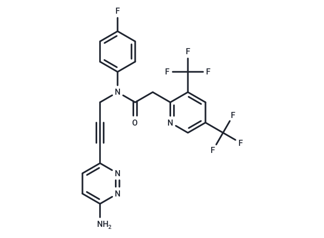 SMILESNc1ccc(nn1)C#CCN(C(=O)Cc1ncc(cc1C(F)(F)F)C(F)(F)F)c1ccc(F)cc1