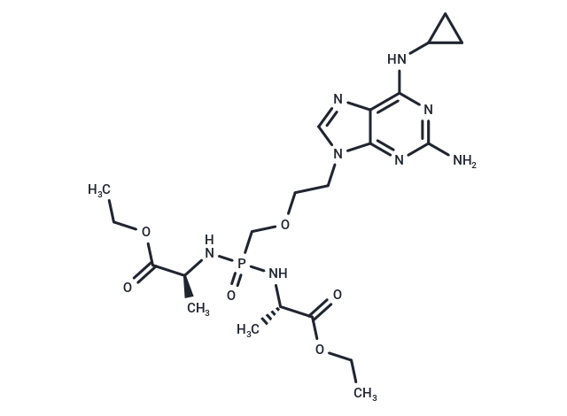 SMILESC(COCP(N[C@H](C(OCC)=O)C)(N[C@H](C(OCC)=O)C)=O)N1C=2C(=C(NC3CC3)N=C(N)N2)N=C1