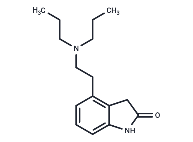 DescriptionRopinirole (SKF 101468) is an orally active, potent D3/D2 receptor agonist with a Ki of 29 nM for D2 receptor. Ropinirole has pEC50s of 7.4, 8.4 and 6.8 for hD2, hD3 and hD4 receptors, respectively. Ropinirole has no affinity for the D1 receptors. Ropinirole has the potential for Parkinson's disease.