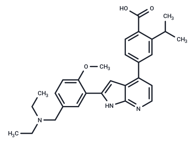 SMILESCCN(CC)Cc1ccc(OC)c(c1)-c1cc2c(ccnc2[nH]1)-c1ccc(C(O)=O)c(c1)C(C)C