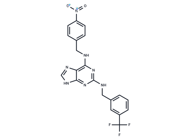 SMILES[O-][N+](=O)c1ccc(CNc2nc(NCc3cccc(c3)C(F)(F)F)nc3[nH]cnc23)cc1