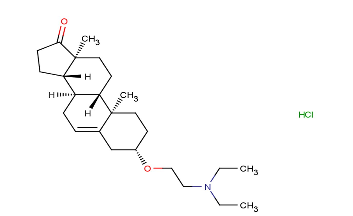 SMILESC[C@@]12[C@]3([H])[C@](CC=C1C[C@@H](OCCN(CC)CC)CC2)([H])[C@@]4([H])[C@@](C)(C(CC4)=O)CC3.Cl