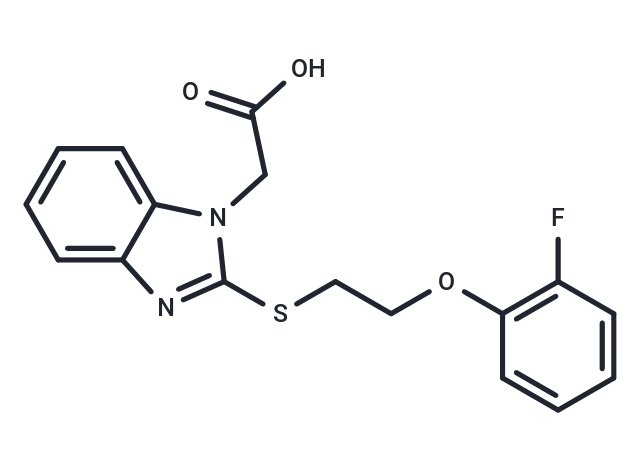 (2-{[2-(2-fluorophenoxy)ethyl]sulfanyl}-1H-benzimidazol-1-yl)acetic acid is a prostaglandin-like CRTH2 antagonist with an IC50 < 10 μM, which can be used in studies of rhinitis, COPD, rheumatoid arthritis, eczema and conjunctivitis.