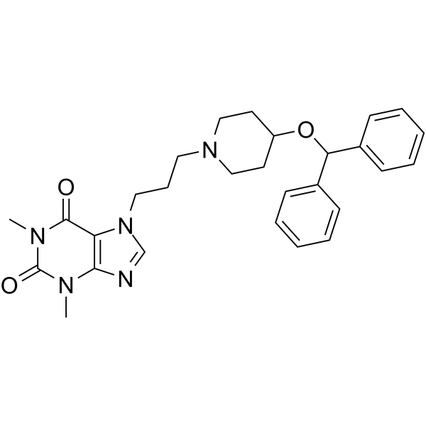 SMILESCn1c2ncn(CCCN3CCC(CC3)OC(c3ccccc3)c3ccccc3)c2c(=O)n(C)c1=O