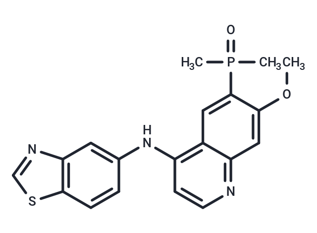 SMILESO=P(C1=CC=2C(=NC=CC2NC=3C=CC=4SC=NC4C3)C=C1OC)(C)C