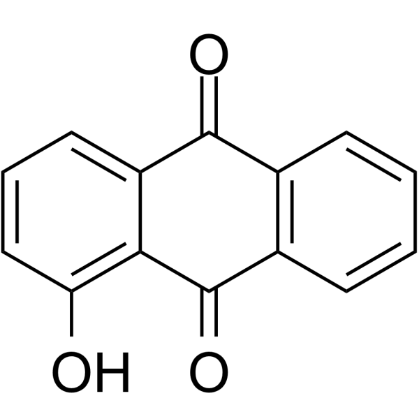 Description1-Hydroxyanthraquinone is an anthraquinone that has been found in Morinda officinalis and has genotoxic and carcinogenic activities. 1-Hydroxyanthraquinone generates strong DNA repair response.(In Vitro):1-Hydroxyanthraquinone (5 and 500 μM) increases the percentage of isolated rat hepatocytes undergoing unscheduled DNA synthesis, indicating genotoxic activity.(In Vivo):Dietary administration of 1-Hydroxyanthraquinone (1%) induces formation of cecum and colon adenocarcinomas, as well as hepatocellular carcinomas, in rats.