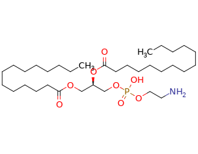 DescriptionPE(14:0/14:0) is a phosphatidylethanolamine (PE or GPEtn). It is a glycerophospholipid in which a phosphorylethanolamine moiety occupies a glycerol substitution site. PE(14:0/14:0) in particular consists of two chains of myristic acid at the C-1 and C-2 positions. The myristic acid moieties are derived from nutmeg and butter. Phospholipids are ubiquitous in nature and are key components of the lipid bilayer of cells as well as being involved in metabolism and signaling.